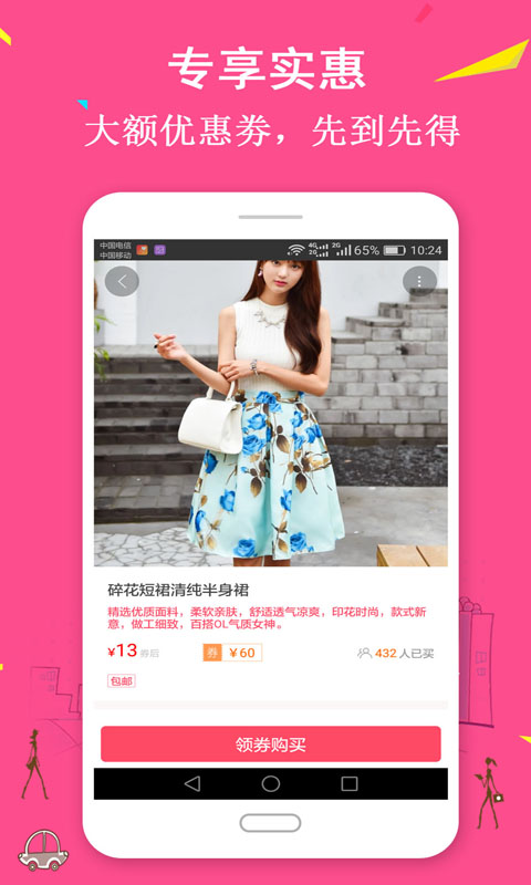4每天都会更新上万款带有内部优惠券的商品,不仅数量丰富,品类也十分齐全,优惠券天天都有!先领取优惠券,再下单购物,就能比其他人少花不少钱!这可是淘宝网省钱购物的必备软件哦。