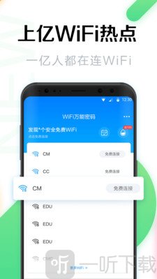 2. 一键查询,一秒钟内即可定位免费Wi-Fi热点,再通过一键安全连接,操作便捷,上网轻松。