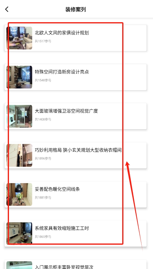 2进入学习专区后,丰富多样的装修实例映入眼帘,从中选择一个自己最想深入学习的实例。