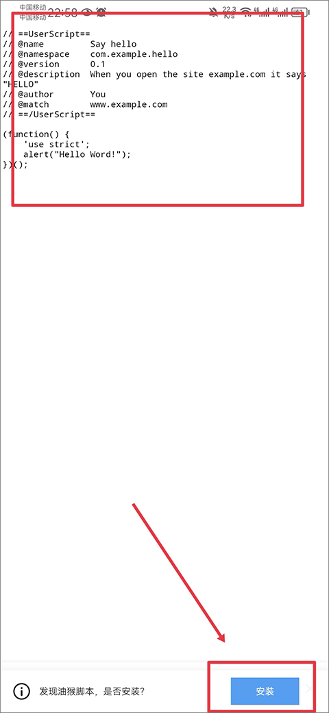 3、之后再次点击“安装”按钮,即可弹出浏览器的脚本安装提示。
