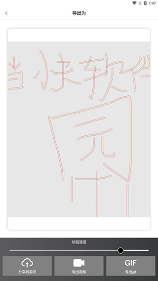 8、创作完成后,点击右上角的按钮,就能把它分享到画吧,还能导出视频格式或gif格式,快来尝试一下吧!