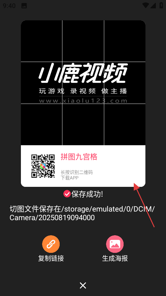 3图片分割操作结束后,系统会显示处理完成的提示,同时还提供生成海报的功能选项,通过该功能可将分割后的图片素材制作成适合多场景展示的海报。