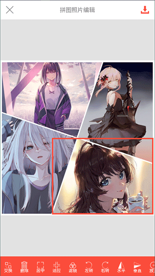 4、单独选中某一张图片后,还能实现与其他图片交换位置、设置滤镜效果,以及对图片进行放大或缩小等操作。