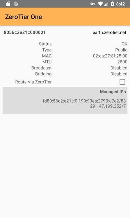 ZeroTier One for Android能够让你把ZeroTier虚拟网络当作局域网连接,添加到Android手机或者平板电脑设备上。