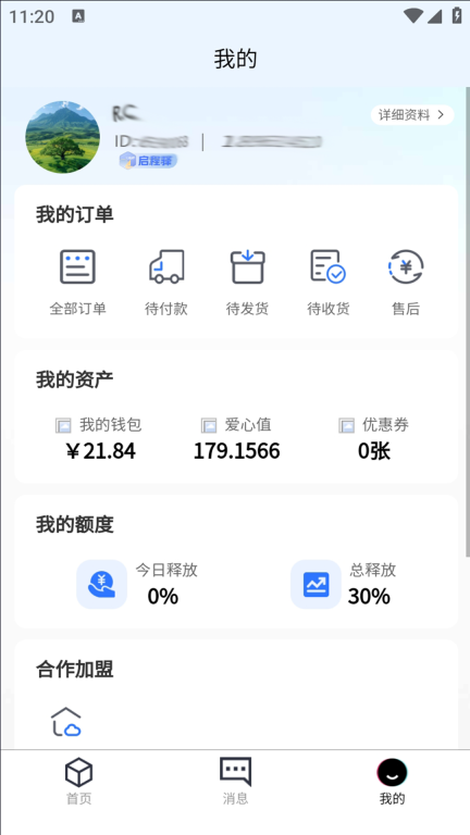 2、个人中心支持查看用户的全部订单,同时展示用户消费后所获取的爱心值数据,该爱心值可用于兑换相应的购物优惠券。