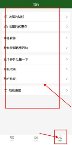 3、在“我的”页面中,您可以看到自己收藏的常用路线以及已领取的优惠券等重要信息。