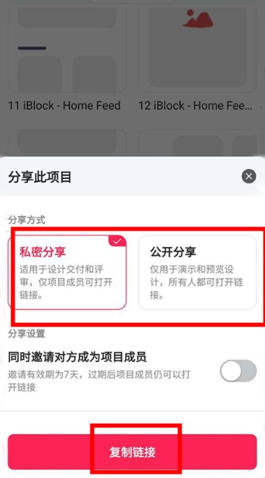 点击项目首页右上角分享按钮,复制链接给他人预览。