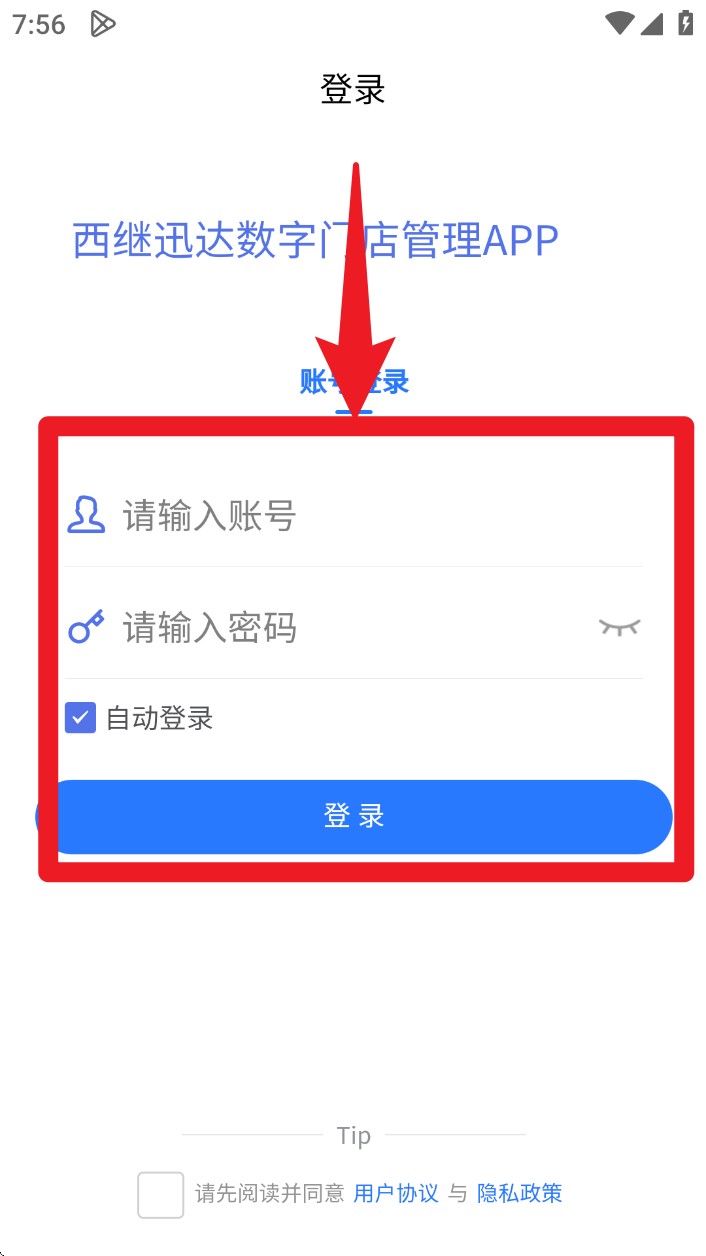 1启动应用程序后进入登录界面,在指定区域填写账号信息与密码,随后点击界面下方的蓝色登录按钮以进入系统,同时可选择启用自动登录功能。