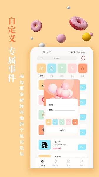 这款软件专为情侣、朋友、家人和闺蜜设计,是记录100件温暖、甜蜜又有趣小事的工具,能给日常生活增添新鲜感。它覆盖文艺、生活、旅行、美食、运动、趣味等多种类型的事件,每件事都能让生活满是美好,而此刻最要紧的,就是陪你一同记录这些瞬间。