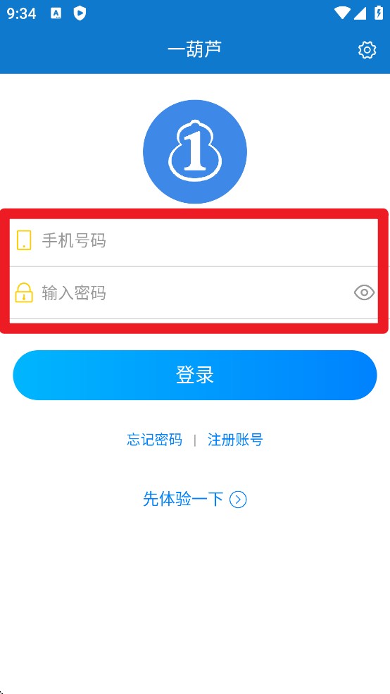 1、在登录页面输入手机号与密码后,即可进入系统首页,同时支持一键体验功能。