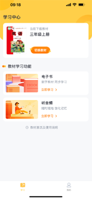 在“学习”界面点击“激活教材”,即可进入资源激活引导流程;系统提供了两种资源激活方式,您可任选其一操作。