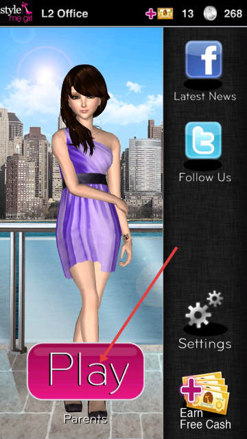 1、点击【Play】按钮开始《时尚女孩》游戏。