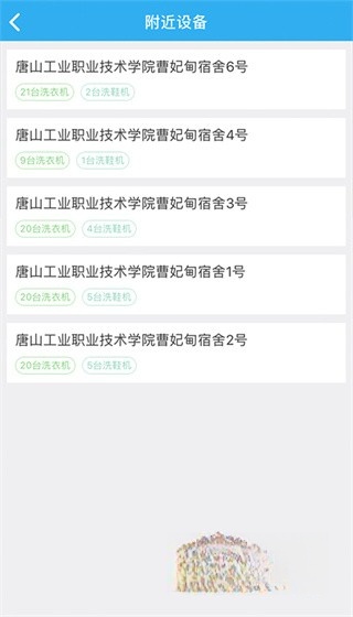 不是的,除了洗衣机之外,还有烘干机、洗鞋机、饮水机等其他共享设备,具体配备的设备可以查看所在区域的配置情况。