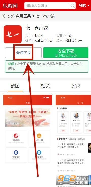在本页面内就可以直接访问七一客户端,点击【普通】或者【立即】按钮即可。