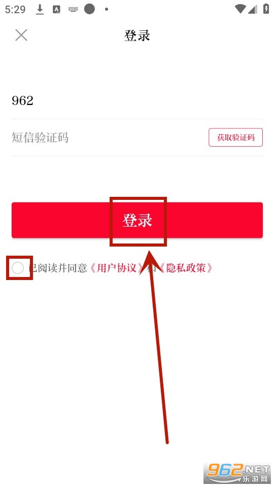 4.输入手机号及验证码,勾选隐私协议后,点击【登录】按钮即可完成操作。