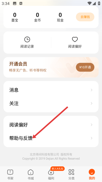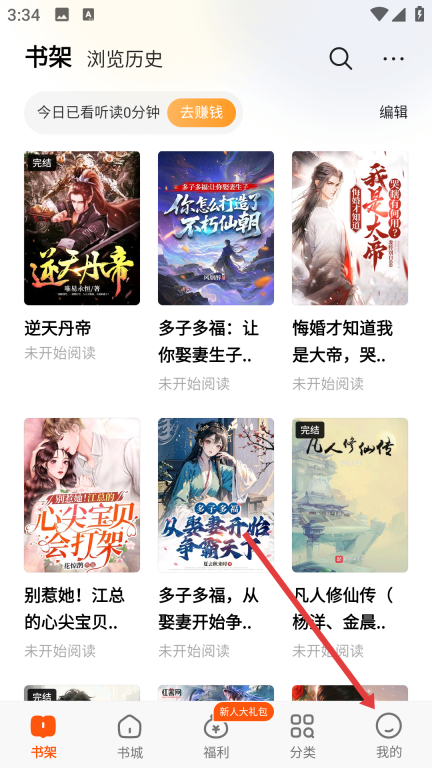 1在书架页面,点击底部的【我的】选项,即可进入个人中心页面。