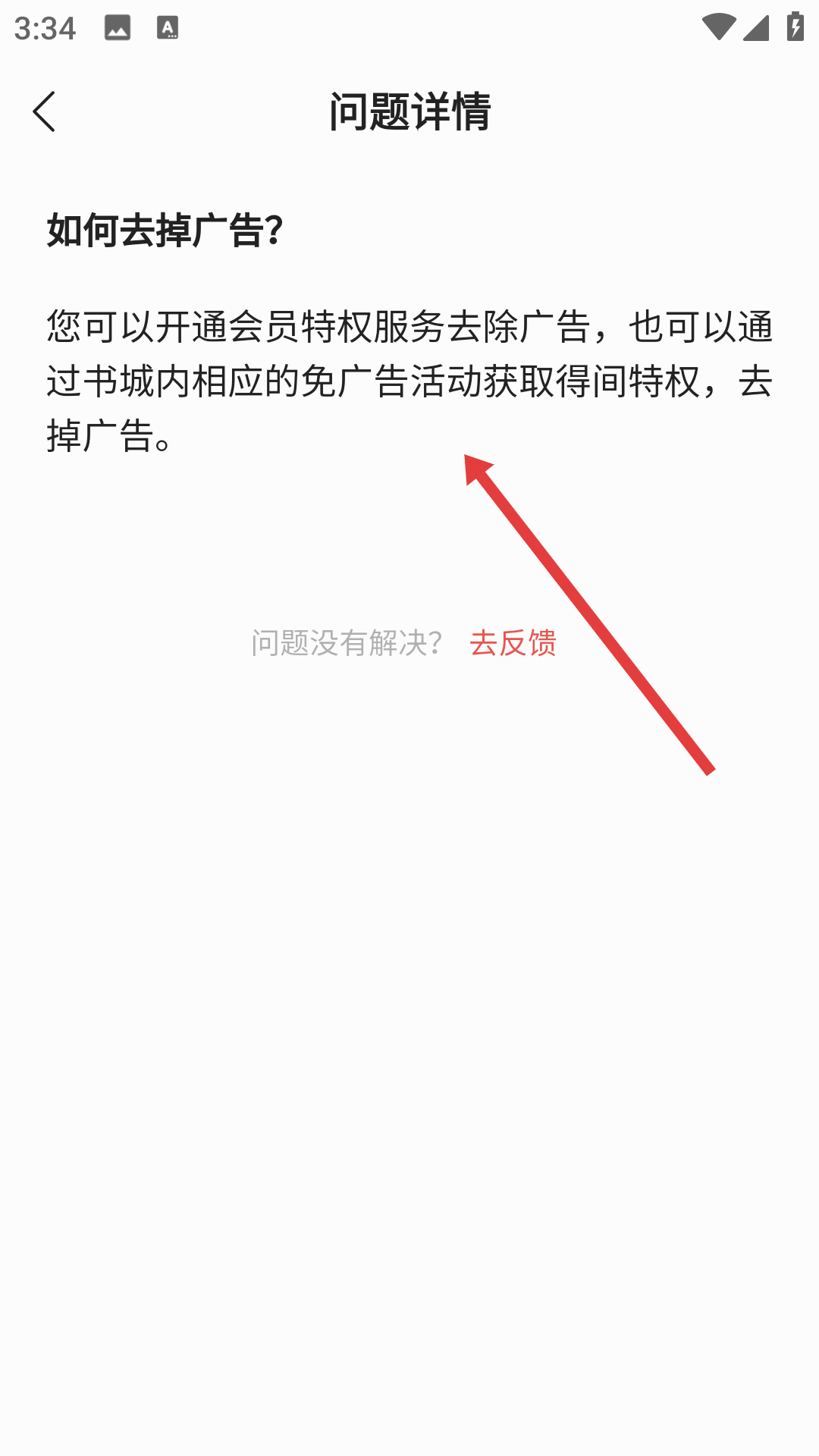 4、在问题详情页面,能够查看去除广告的途径:一是开通会员特权服务,二是参与书城活动以获取得间特权。