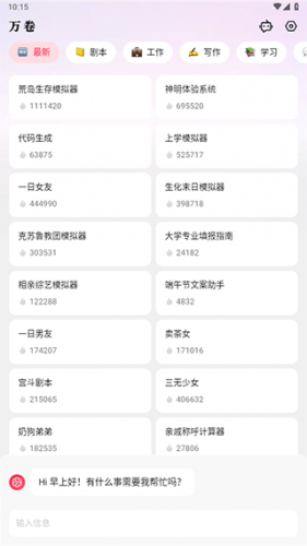1在这个平台完成万卷相关操作后,打开对应的应用程序,映入眼帘的主界面上呈现出丰富多样的各类主题内容。