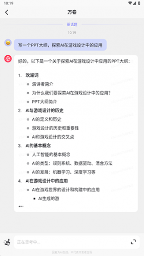 5、比如写一个ppt大纲等等,还可以让它帮你写一些其他的内容。