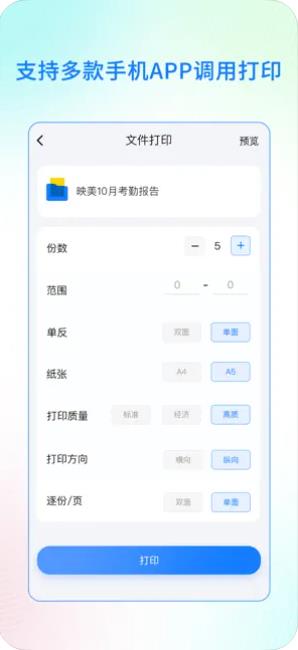 3该功能支持对多种类型的文件进行打印设置,用户可以便捷地通过手机完成文件的远程打印流程,同时还能享受到清晰细致的操作指引服务。