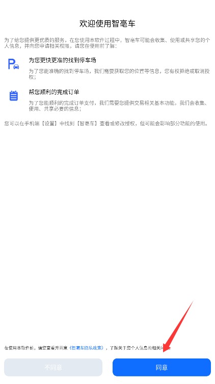1首次使用时,请仔细阅读平台的服务条款和隐私政策,确认无误后点击同意按钮,即可进入应用。