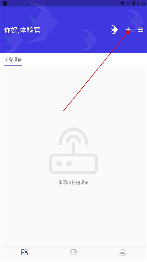 2、登录后进入首页,用户可选择通过蓝牙配网来连接设备。