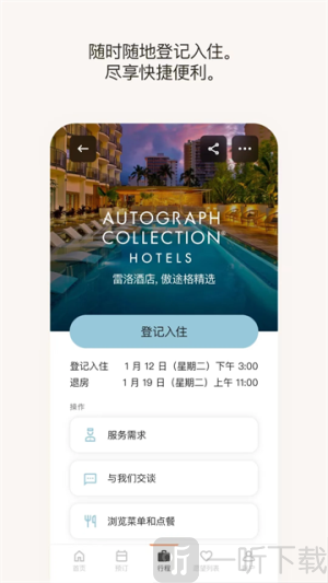 1. 只需一键操作,就能提前预订好目的地的酒店客房,为旅行提前做好周全的准备。