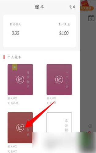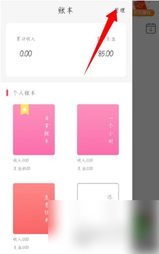 2在界面的左边部分,会呈现出账本相关的列表页面,此时需要点击页面上方位置的“管理”功能按钮。