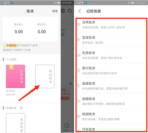 点击【首页】左上角的账本图标,进入多账本页面后,选择“新建账本”操作即可。