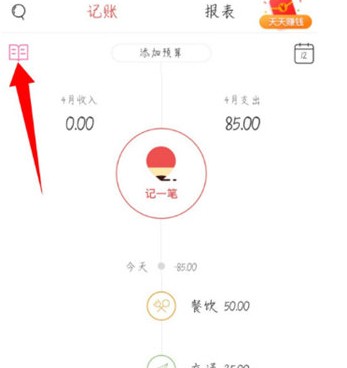 1、打开有鱼记账应用,点击左上角的账本图标。