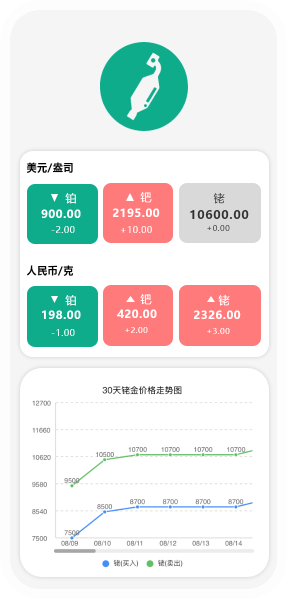 -自定义配置铂钯铑单价,快速算出产品价值。