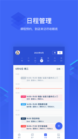 1通过日程管理功能,用户能够轻松了解顾客的到店安排,同时清晰掌握会员的来访情况。