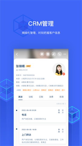 三体云智能科技有限公司在2019年推出了这款应用,其核心目标是为健身房打造一套全方位的运营管理解决方案。借助SaaS云存储技术的优势,该应用实现了与微信端的无缝衔接,让用户能够不受时间和地点限制地开展移动办公,还能便捷地完成会员在线课程预约、互动交流等操作,大幅提升了使用的便利性。