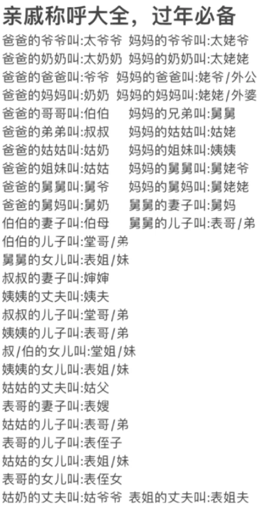 1、拜年时面对一屋子的三姑六婆、七大姑八大姨,该怎么称呼她们呢?