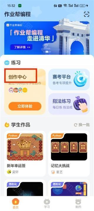 1、第一步先打开作业帮编程软件,进入首页之后,点击页面上的【创作中心】按钮。