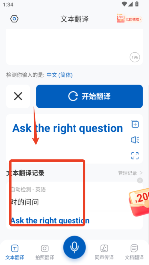 2当需要语音翻译时,长按麦克风图标后直接说话,系统会实时识别语音内容并同步生成对应的文字翻译结果,这种方式特别适用于当面交流的场景。