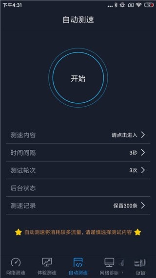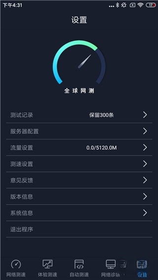 在设置页面中,用户能够查看全球网测留存的300条测试记录,还可以进行流量设置,从而更有效地管控流量使用状况。