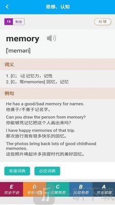 3.多种搜索途径能让您对比单词的具体用法,还能检验对单词的掌握程度。