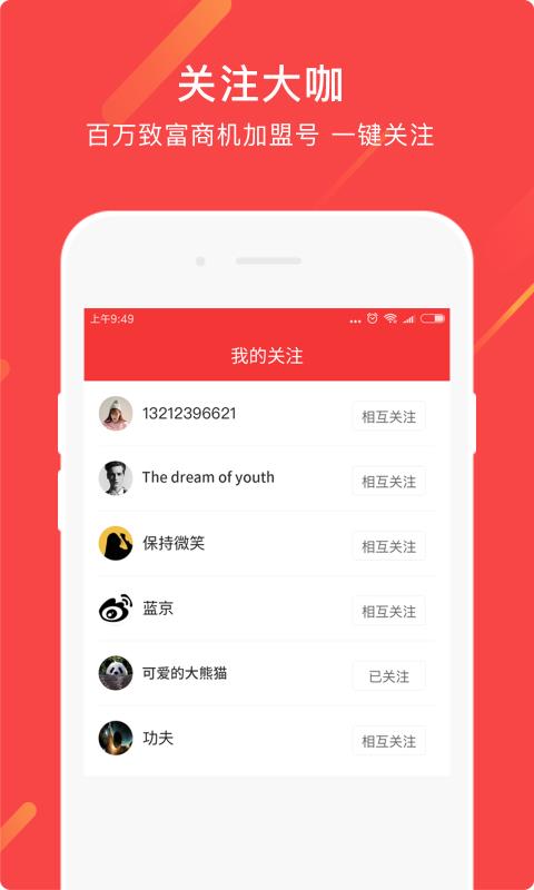 2、关注创业大咖,大咖每天为您推送各种商机动态;