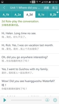 1、涵盖七年级至九年级的单词与课文同步翻译内容,所有内容均配备高清真人发音,支持跟读和点读功能;