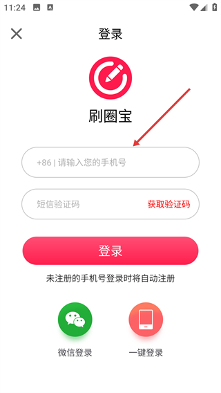 2、在登录页面的手机号输入框内填写需用于登录的手机号码。