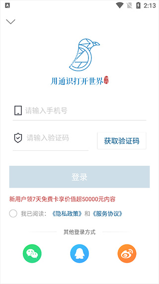 1、启动后,新用户需要使用手机号和验证码进行登录。