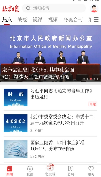 1、本地新闻,包括中央新闻、北京社会头条