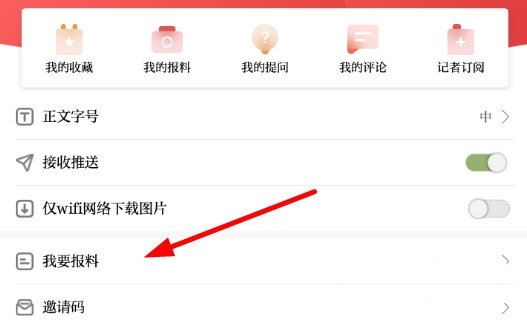2之后在列表里找到“我要报料”这个选项并点击,进入对应的页面就能提交稿件了。