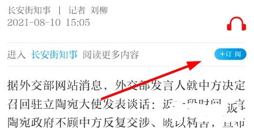 2、随后在新闻阅读界面,点击用户右侧的“订阅”按钮就可以了。