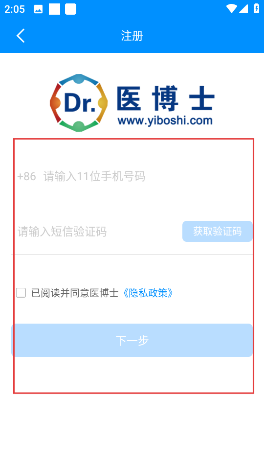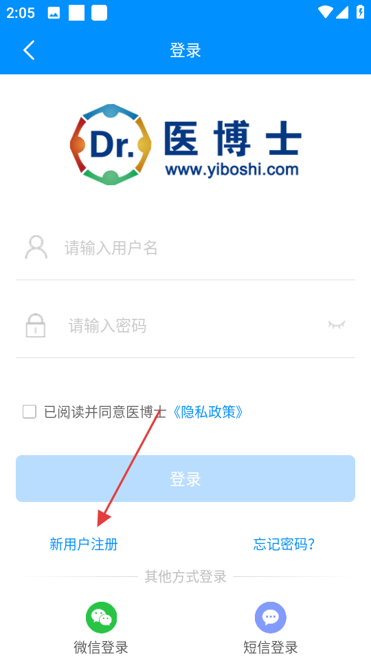1、启动医博士应用,点击界面右下角的“我的”选项,进入个人中心页面。