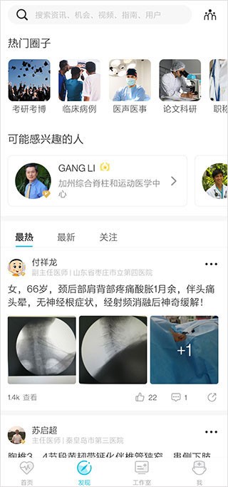 你可以随时发布和分享任何医疗信息,还能一键更新内容;遇到志同道合的医学同事时,可直接在线实时聊天交流。