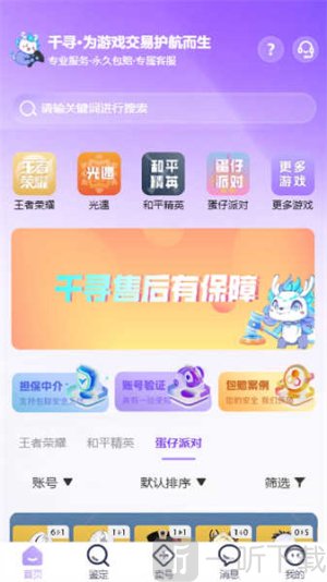 千寻代售是一款深受玩家信赖的账号交易平台,平台上汇聚了王者荣耀、和平精英、原神等众多热门游戏账号,同时还提供买号、卖号、账号估值、账号鉴定等一站式专业服务,致力于为玩家打造绿色、安全、高效、透明的交易环境。