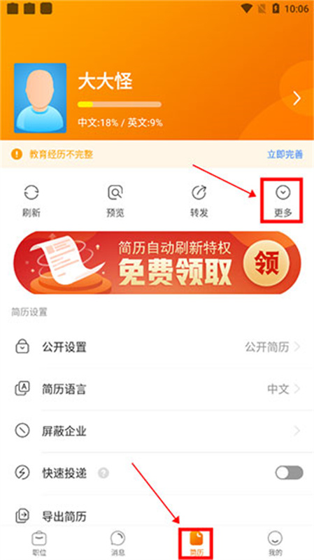 4、高效管理简历