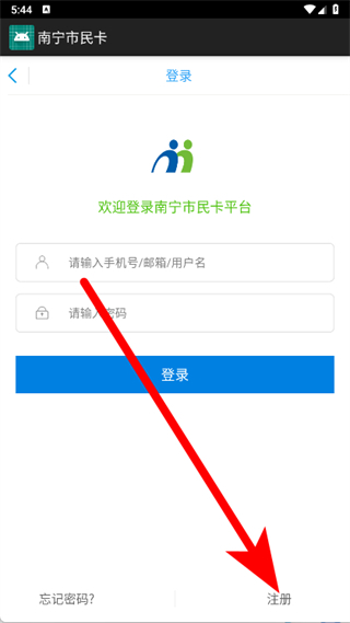 3、进入登录界面后,点击右下角的注册按钮,进入注册页面。